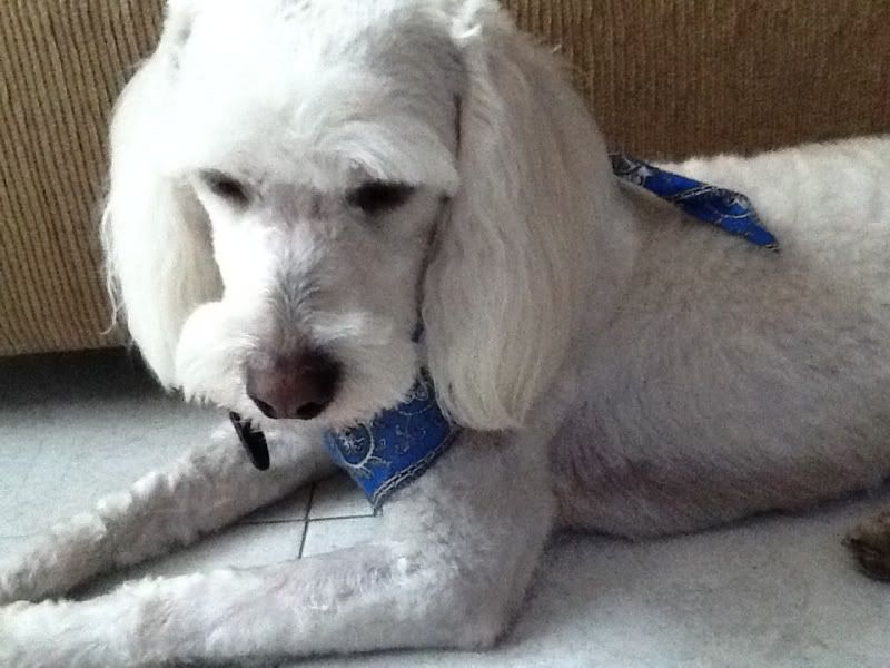 A pesar de todo lo anteriormente expuesto, este fin de semana mi hermano llegó a la casa de todos ustedes con un perro rescatado de un hospicio, tiene 2 años y se llama Ruffo. Y si están pensando que el perro es un Poodle pues acertaron, es un Poodle cruzado con Maltes lo que hace que se vea bastante chistoso. Aún así, este perro no me causa esa animadversion que tengo con el resto del mundo Poodle. Ruffo es tranquilo, buena onda y trae un paleacate azul en el cuello que lo hace ver todavía más buena onda. Juzguen ustedes mismos: